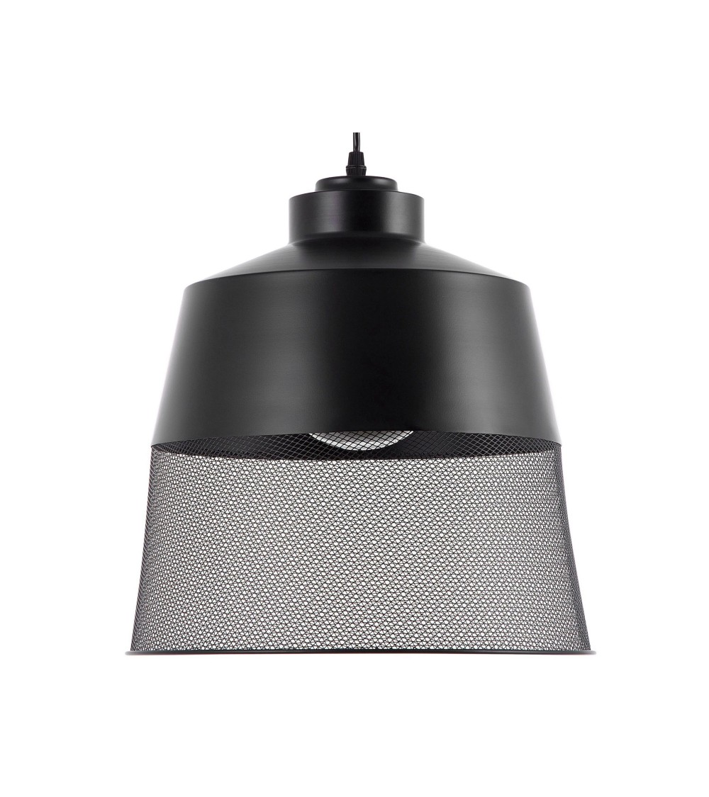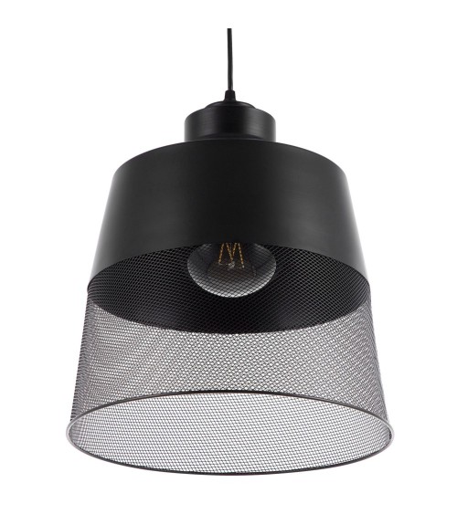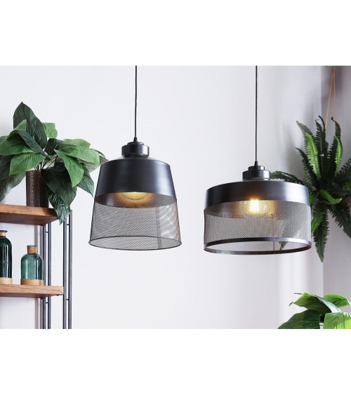 Cette lampe suspension est un complément idéal pour des intérieurs dans un style moderne et/ou industriel. L'abat-jour en métal noir est composé de deux parties. La partie supérieure est en métal noir, tandis que le bas est décoré d'une fine grille. L'ensemble est également équipé d'un câble et d'une fixation plafond noirs assortis. Adaptée aux ampoules E27 d'une puissance maximale de 40 W. L'ampoule n'est pas incluse dans loffre.
