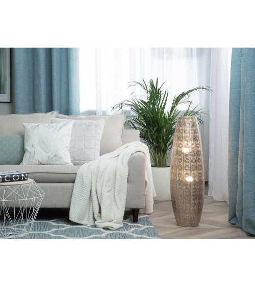 Ce lampadaire en métal est orné de motifs orientaux qui lui donnent un charme irrésistible, tel un conte des mille et une nuits ! Les éléments décoratifs donnent un joli jeu dombre et une belle lumière chaleureuse, offrant à chaque pièce une touche romantique. Ce lampadaire décoratif s'intègre dans différents styles d'ameublement, qu'ils soient ludiques, modernes ou vintage.