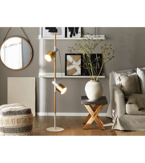 Cette lampe au design contemporain ne vous laissera pas indifférent, par son style, sa couleur et son originalité, notamment avec ses deux abat-jours réglables en hauteur. Les matériaux sont de bonne qualité et très résistants : les deux abat-jours de couleur dorée en métal ont un diamètre de 12 cm et le socle est également en métal, tandis que la tige est en bois. Avec une hauteur de 125 cm la lampe impressionne par sa polyvalence et sa luminosité optimale. Elle sera un parfait élément décoratif dans votre zone d'entrée, chambres, salle de séjour, ou bien dans votre coin lecture Classe d'énergie: Cette lampe est adaptée pour les lampes des classes d'énergie: A ++ à E. classes d'énergie sur une échelle de A ++ (le plus efficace) à E (efficacité la plus faible). Pour une tension maximale de 40W.
