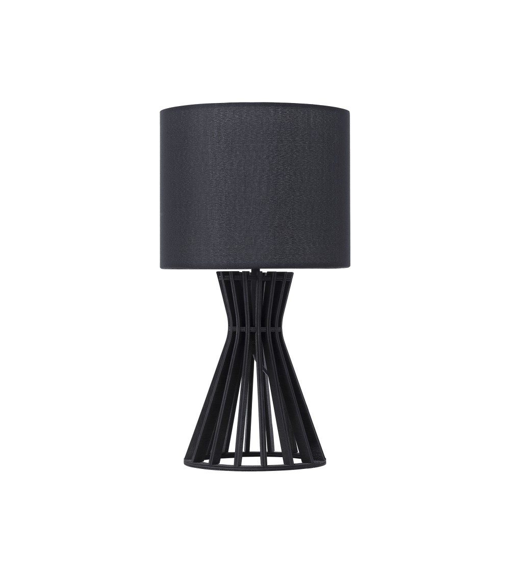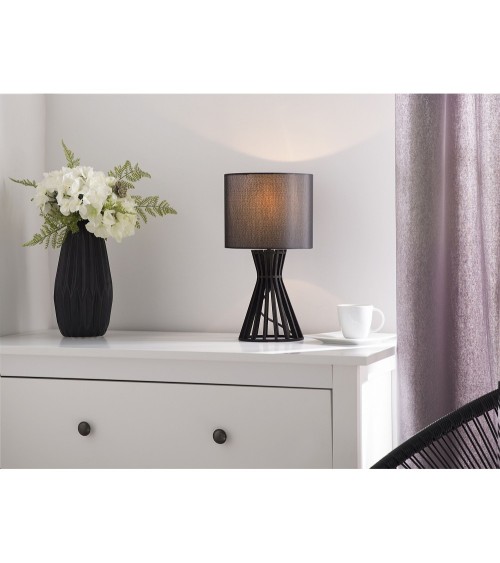 Cette lampe de table est un oasis de beauté pour chaque intérieur. La base de la lampe est faite de tiges de bois délicats, avec des espaces ouverts. L'abat-jour rond de couleur noire souligne le caractère classique de cette lampe. Cet éclairage élégant et décoratif sera parfait sur une commode ou sur une petite table de chevet. La lampe est muni dun câble noir avec un interrupteur et elle convient aux ampoules E14 avec un maximum de 40W. L'ampoule n'est pas incluse.