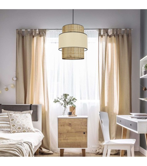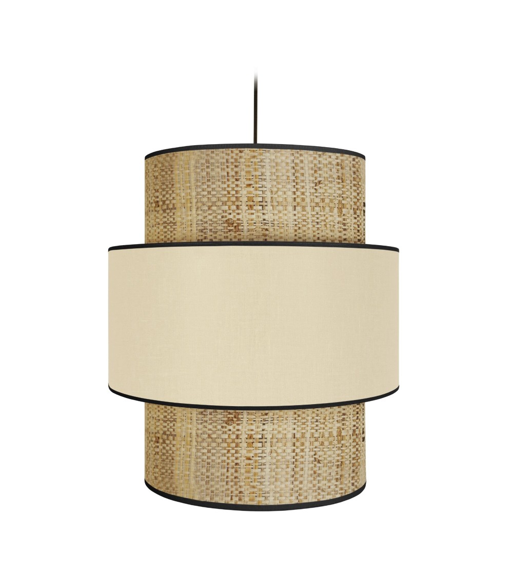 Caractérisée par son abat-jour original, cette suspension se prête aussi bien à une décoration scandinave que contemporaine. Entre des murs lumineux, cette l'opulente suspension apporte une touche graphique harmonieuse dans la pièce à vivre. Vous aimerez ses formes rondes et apaisantes de double abat-jour qui permet d'adoucir la luminosité de l'ampoule pour vous aider à créer une atmosphère conviviale et agréable. Vous pourrez ajuster la suspension en hauteur. - Suspension COCHIN cylindrique tissu paille crème - Abat-jour tissu couleur crème forme cylindrique - Douille E27 x1 lumière - Ampoule non inclus conseillé: LED 7W (halogène, maxi. 40W) type standard A19 - Projection lumineuse ambiant - Connexion réseau électrique: boîtier de connexion isodom - Interrupteur non inclus - Style inspiration nordique - Classe de Protection II - Indice de protection: IP20 - Dimmable , dimmer non inclus - Tension de fonctionnement : 230V - Tension d'alimentation : 230V - Dimension abat-jour: Hauteur 46cm x Longueur 40cm x Largeur 40cm - Dimension global: Hauteur 106cm x Longueur 40cm x Largeur 40cm - Poids net du produit: 1,3KgSuspension COCHIN tissu cylindrique crèmeDouille E27x1 lumièreAmpoule non inclusAmpoule conseillé: LED 7W (halogène, maxime 40W) type standard A19Projection lumineuse ambiantConnexion réseau électrique: boîtier de connexion isodomInterrupteur non inclusStyle inspiration nordiqueIndice de protection: IP20Dimension abat-jour: Hauteur 46 cm x Longueur 40 cm x Largeur 40 cm Dimension global: Hauteur 106cm x Longueur 40cm x Largeur 40cm