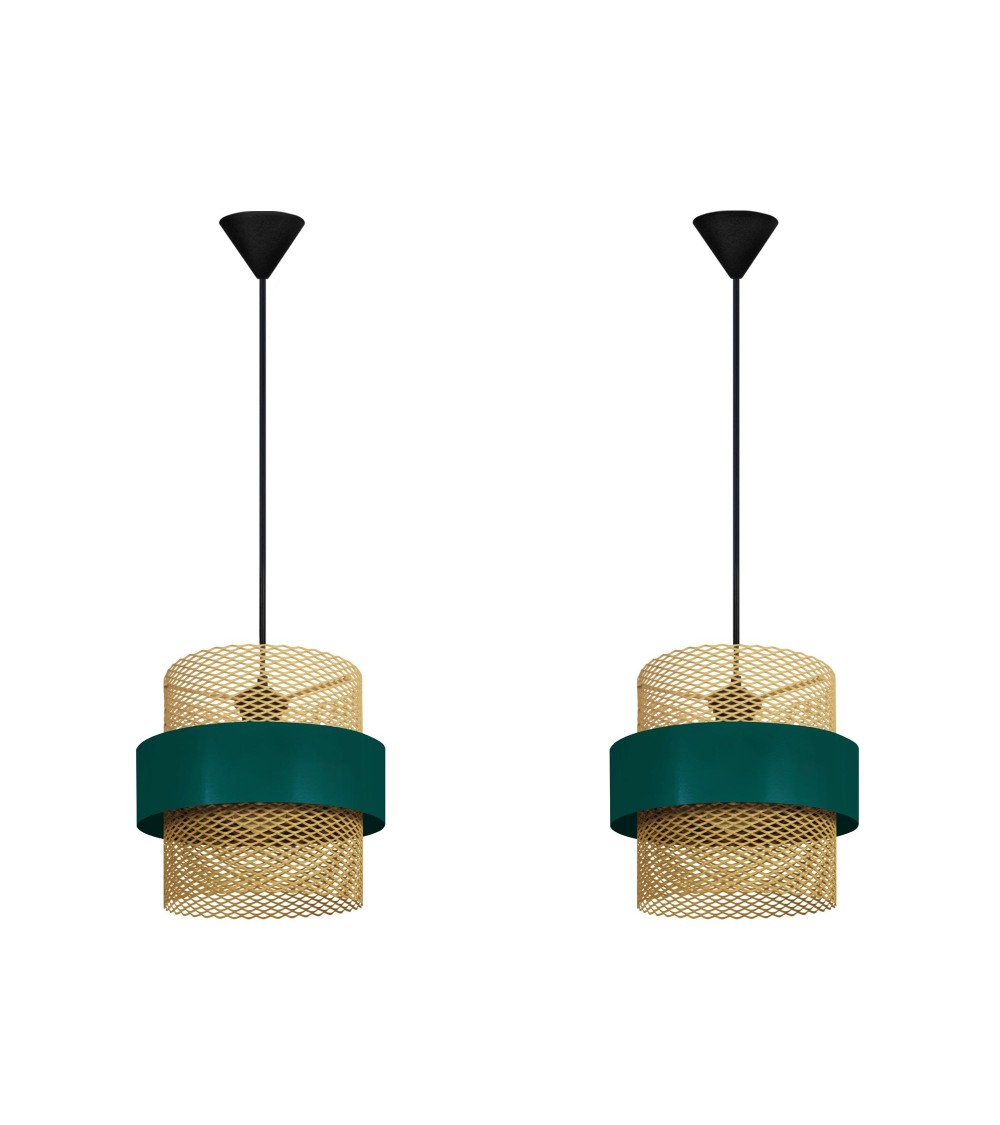 Un design original et une couleur intérieur dorée, ce sont ces qualités que représentent ces suspensions. Un lot de 2 pièces vous donne un meilleur prix et vous permettra de jouer avec différents positionnements et hauteurs .Luminaire idéal dans une cuisine ou un salon pour sublimer votre décoration d'intérieur. Ce produit est construit en tôle d'acier 100% recyclable. Suspension MISIS LOT2 cylindrique métal vert et doré - Abat-jour acier couleur jaune forme cylindrique - Douille E27 x1 lumière - Ampoule non inclus conseillé: LED 7W (halogène, maxi. 40W) type standard A19 - Projection lumineuse vers le haut & le bas - Connexion réseau électrique: boîtier de connexion isodom - Interrupteur non inclus - Style urbain - Classe de Protection II - Indice de protection: IP20 - Dimmable , dimmer non inclus - Tension de fonctionnement : 230V - Tension d'alimentation : 230V - Dimension abat-jour: Hauteur 25cm x Longueur 27cm x Largeur 27cm - Dimension global: Hauteur 85cm x Longueur 27cm x Largeur 27cm - Poids net du produit: 0,8KgSuspension MISIS LOT2 acier cylindrique jaune Douille E27x1 lumièreAmpoule non inclusAmpoule conseillé: LED 7W (halogène, maxime 40W) type standard A19Projection lumineuse vers le haut & le basConnexion réseau électrique: boîtier de connexion isodomInterrupteur non inclusStyle urbainIndice de protection: IP20Dimension abat-jour: Hauteur 25 cm x Longueur 27 cm x Largeur 27 cm Dimension global: Hauteur 85cm x Longueur 27cm x Largeur 27cm