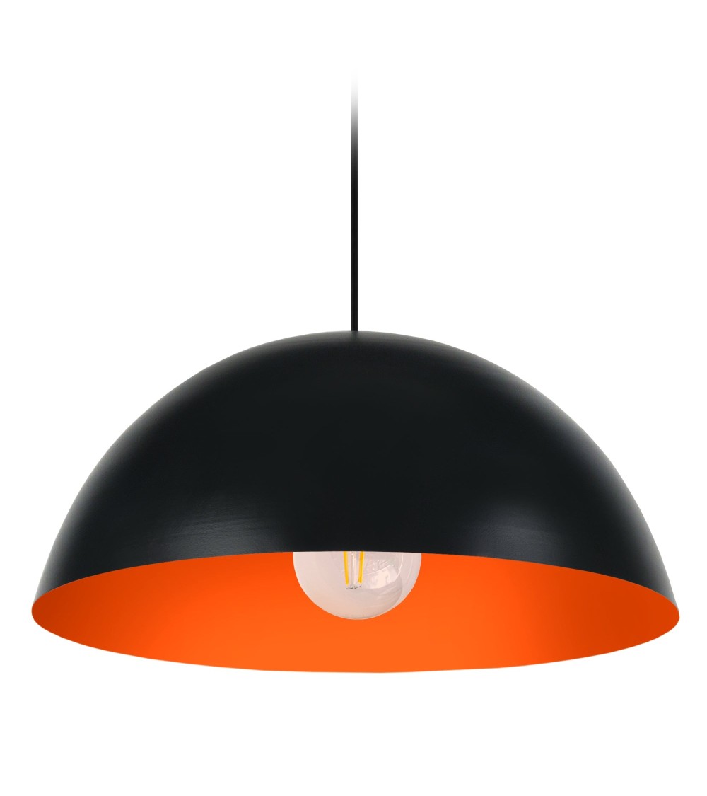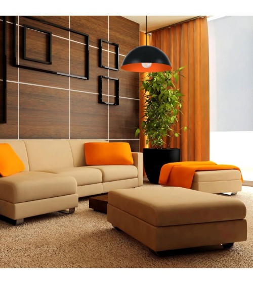 Suspension minimaliste et fonctionnelle. Ses lignes épurées, ses formes rondes et son métal mat offrent une allure élégante avec des associations avec une déco nordique stylée.La lumière est magnifiquement répartie sur tout l'écran avec un éclairage uniforme et sans éblouissement. La décoration parfait pour la chambre functionel des jeunes. - Suspension DEMI-BOULE dôme métal noir et orange - Abat-jour acier couleur orange forme bol - Douille E27 x1 lumière - Ampoule non inclus conseillé: LED 7W (halogène, maxi. 40W) type standard A19 - Projection lumineuse vers le bas - Connexion réseau électrique: boîtier de connexion isodom - Interrupteur non inclus - Style pop color - Classe de Protection II - Indice de protection: IP20 - Dimmable , dimmer non inclus - Tension de fonctionnement : 230V - Tension d'alimentation : 230V - Dimension abat-jour: Hauteur 19cm x Longueur 42,5cm x Largeur 42,5cm - Dimension global: Hauteur 78cm x Longueur 42,5cm x Largeur 42,5cm - Poids net du produit: 1,1KgSuspension DEMI-BOULE acier bol orangeDouille E27x1 lumièreAmpoule non inclusAmpoule conseillé: LED 7W (halogène, maxime 40W) type standard A19Projection lumineuse vers le basConnexion réseau électrique: boîtier de connexion isodomInterrupteur non inclusStyle pop colorIndice de protection: IP20Dimension abat-jour: Hauteur 19 cm x Longueur 42,5 cm x Largeur 42,5 cm Dimension global: Hauteur 78cm x Longueur 42,5cm x Largeur 42,5cm