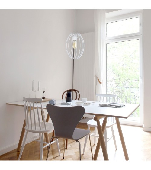 Minimaliste et graphique, il trouvera sa place dans un décor contemporain ou industriel. Cette suspension design en métal est une merveille pour parfaire votre éclairage décoratif dans la maison. Grâce à sa taille élancée, et a son hauteur réglable, vous pouvez le suspendre seul au-dessus d'une table, d'une entrée, ou à deux ou trois, à différentes hauteurs et positions sur une table à manger rectangulaire ou ronde, ainsi qu'au-dessus d'un bar. - Suspension ASOLO géométrique métal blanc - Abat-jour acier couleur blanc forme ovale - Douille E27 x1 lumière - Ampoule non inclus conseillé: LED 7W (halogène, maxi. 40W) type tube ST18 - Projection lumineuse directions multiples - Connexion réseau électrique: boîtier de connexion isodom - Interrupteur non inclus - Style urbain - Classe de Protection II - Indice de protection: IP20 - Dimmable , dimmer non inclus - Tension de fonctionnement : 230V - Tension d'alimentation : 230V - Dimension abat-jour: Hauteur 25cm x Longueur 19cm x Largeur 19cm - Dimension global: Hauteur 85cm x Longueur 19cm x Largeur 19cm - Poids net du produit: 0,6KgSuspension ASOLO acier ovale blancDouille E27x1 lumièreAmpoule non inclusAmpoule conseillé: LED 7W (halogène, maxime 40W) type tube ST18Projection lumineuse directions multiplesConnexion réseau électrique: boîtier de connexion isodomInterrupteur non inclusStyle urbainIndice de protection: IP20Dimension abat-jour: Hauteur 25 cm x Longueur 19 cm x Largeur 19 cm Dimension global: Hauteur 85cm x Longueur 19cm x Largeur 19cm