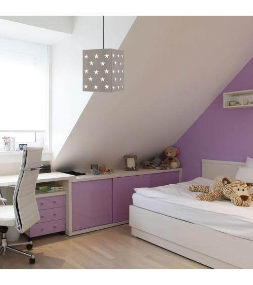 Rendez l'espace de sommeil d'un nouvel arrivant un peu plus adorable avec la merveilleuse et charmante suspension métal et décor etoiles. Construite en fer, etoiles découpées en lazer, et une peinture poudre epoxi, créez une apparence ravissante et parfaite pour les chambres, les salles de jeux et les crèches. - Suspension ETOILES 1 carré métal taupe - Abat-jour acier couleur taupe forme cylindrique - Douille E27 x1 lumière - Ampoule non inclus conseillé: LED 7W (halogène, maxi. 40W) type standard A19 - Projection lumineuse vers le haut & le bas - Connexion réseau électrique: boîtier de connexion isodom - Interrupteur non inclus - Style bohème - Classe de Protection II - Indice de protection: IP20 - Dimmable , dimmer non inclus - Tension de fonctionnement : 230V - Tension d'alimentation : 230V - Dimension abat-jour: Hauteur 25cm x Longueur 18cm x Largeur 18cm - Dimension global: Hauteur 85cm x Longueur 18cm x Largeur 18cm - Poids net du produit: 0,7KgSuspension ETOILES 1 acier cylindrique taupeDouille E27x1 lumièreAmpoule non inclusAmpoule conseillé: LED 7W (halogène, maxime 40W) type standard A19Projection lumineuse vers le haut & le basConnexion réseau électrique: boîtier de connexion isodomInterrupteur non inclusStyle bohèmeIndice de protection: IP20Dimension abat-jour: Hauteur 25 cm x Longueur 18 cm x Largeur 18 cm Dimension global: Hauteur 85cm x Longueur 18cm x Largeur 18cm