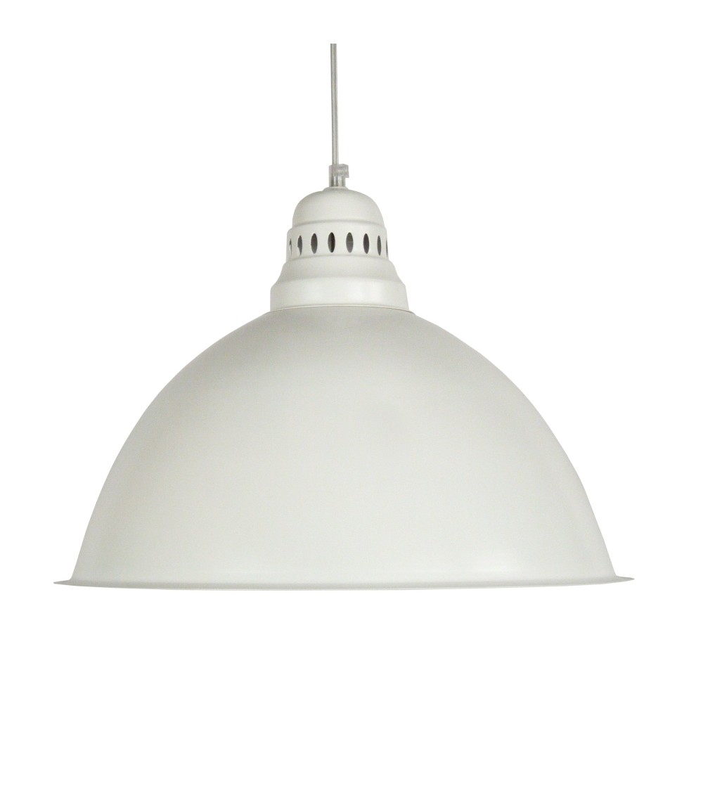 Vous ne vous lasserez pas de cette lampe industrielle . Robuste et simple, elle offre un éclairage irréprochable. Cette lampe peut être installée au-dessus de la table à manger, dans les couloirs ou même les chambres à coucher, cela dépendra du goût de chacun. Elle met en valeur et procure à votre intérieur une ambiance très conviviale. Elle est facile à installer et a une hauteur réglable. - Suspension BEIRAS dôme métal blanc - Abat-jour acier couleur blanc forme cloche - Douille E27 x1 lumière - Ampoule non inclus conseillé: LED 7W (halogène, maxi. 40W) type standard A19 - Projection lumineuse vers le bas - Connexion réseau électrique: boîtier de connexion isodom - Interrupteur non inclus - Style industriel - Classe de Protection II - Indice de protection: IP20 - Dimmable , dimmer non inclus - Tension de fonctionnement : 230V - Tension d'alimentation : 230V - Dimension abat-jour: Hauteur 30cm x Longueur 46cm x Largeur 46cm - Dimension global: Hauteur 90cm x Longueur 46cm x Largeur 46cm - Poids net du produit: 1,6KgSuspension BEIRAS acier cloche blancDouille E27x1 lumièreAmpoule non inclusAmpoule conseillé: LED 7W (halogène, maxime 40W) type standard A19Projection lumineuse vers le basConnexion réseau électrique: boîtier de connexion isodomInterrupteur non inclusStyle industrielIndice de protection: IP20Dimension abat-jour: Hauteur 30 cm x Longueur 46 cm x Largeur 46 cm Dimension global: Hauteur 90cm x Longueur 46cm x Largeur 46cm