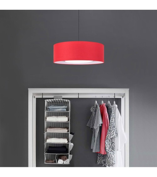 Ce luminaire en coton et intérieur en polyvinyle, a un design simple mais avec personnalité. Fabriqué au Portugal, il emporte avec lui le savoir-faire, l'art et la personnalité européens qui vous permet de donner la touche finale et unique dans la décoration de votre espace, qu'il s'agisse d'une chambre, d'un salon, d'une entrée, d'un bureau ou d'autres espaces. - Suspension ALFENA C cylindrique tissu rouge et transparent - Abat-jour tissu couleur rouge et blanc forme cylindrique - Douille E27 x1 lumière - Ampoule non inclus conseillé: LED 7W (halogène, maxi. 40W) type standard A19 - Projection lumineuse ambiant - Connexion réseau électrique: boîtier de connexion isodom - Interrupteur non inclus - Style urbain - Classe de Protection II - Indice de protection: IP20 - Dimmable , dimmer non inclus - Tension de fonctionnement : 230V - Tension d'alimentation : 230V - Dimension abat-jour: Hauteur 25cm x Longueur 60cm x Largeur 60cm - Dimension global: Hauteur 85cm x Longueur 60cm x Largeur 60cm - Poids net du produit: 0,8KgSuspension ALFENA C tissu cylindrique rouge et blancDouille E27x1 lumièreAmpoule non inclusAmpoule conseillé: LED 7W (halogène, maxime 40W) type standard A19Projection lumineuse ambiantConnexion réseau électrique: boîtier de connexion isodomInterrupteur non inclusStyle urbainIndice de protection: IP20Dimension abat-jour: Hauteur 25 cm x Longueur 60 cm x Largeur 60 cm Dimension global: Hauteur 85cm x Longueur 60cm x Largeur 60cm