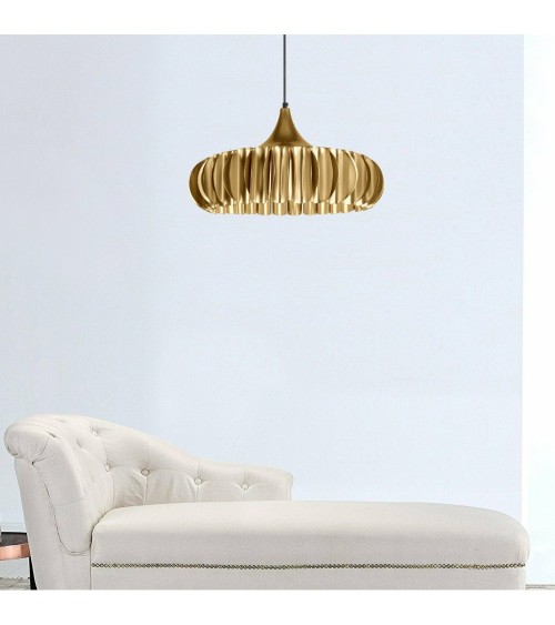 Design moderne et élégant, alliant style industriel rétro et modernité. Cette suspension apporte une touche particulièrement chic à cuisine, chambre au n'import quelle espace intèrieur de votre maison. Fabriqué en fer de haute qualité et totalement recyclable. Son flux lumineux est dirigé vers le bas, avec des espaces latéraux qui laissent passer des ombres légères, le mettant en valeur et donnant au votre espace intérieur une atmosphère très conviviale et accueillante. Hauteur réglable. - Suspension TIAGO 400 S chapelle métal doré- Abat-jour acier couleurdoréforme ovale - Douille E27 x1 lumière - Ampoule non inclus conseillé: LED 7W (halogène, maxi. 40W) type standard A19 - Projection lumineuse vers le bas - Connexion réseau électrique: boîtier de connexion isodom - Interrupteur non inclus - Style charme - Classe de Protection II - Indice de protection: IP20 - Dimmable , dimmer non inclus - Tension de fonctionnement : 230V - Tension d'alimentation : 230V - Dimension abat-jour: Hauteur 22cm x Longueur 40cm x Largeur 40cm - Dimension global: Hauteur 80cm x Longueur 40cm x Largeur 40cm - Poids net du produit: 2,2KgSuspension TIAGO 400 S acier ovale orDouille E27x1 lumièreAmpoule non inclusAmpoule conseillé: LED 7W (halogène, maxime 40W) type standard A19Projection lumineuse vers le basConnexion réseau électrique: boîtier de connexion isodomInterrupteur non inclusStyle charmeIndice de protection: IP20Dimension abat-jour: Hauteur 22 cm x Longueur 40 cm x Largeur 40 cm Dimension global: Hauteur 80cm x Longueur 40cm x Largeur 40cm