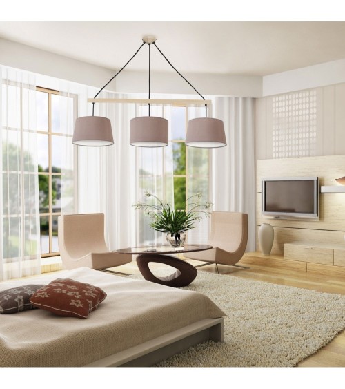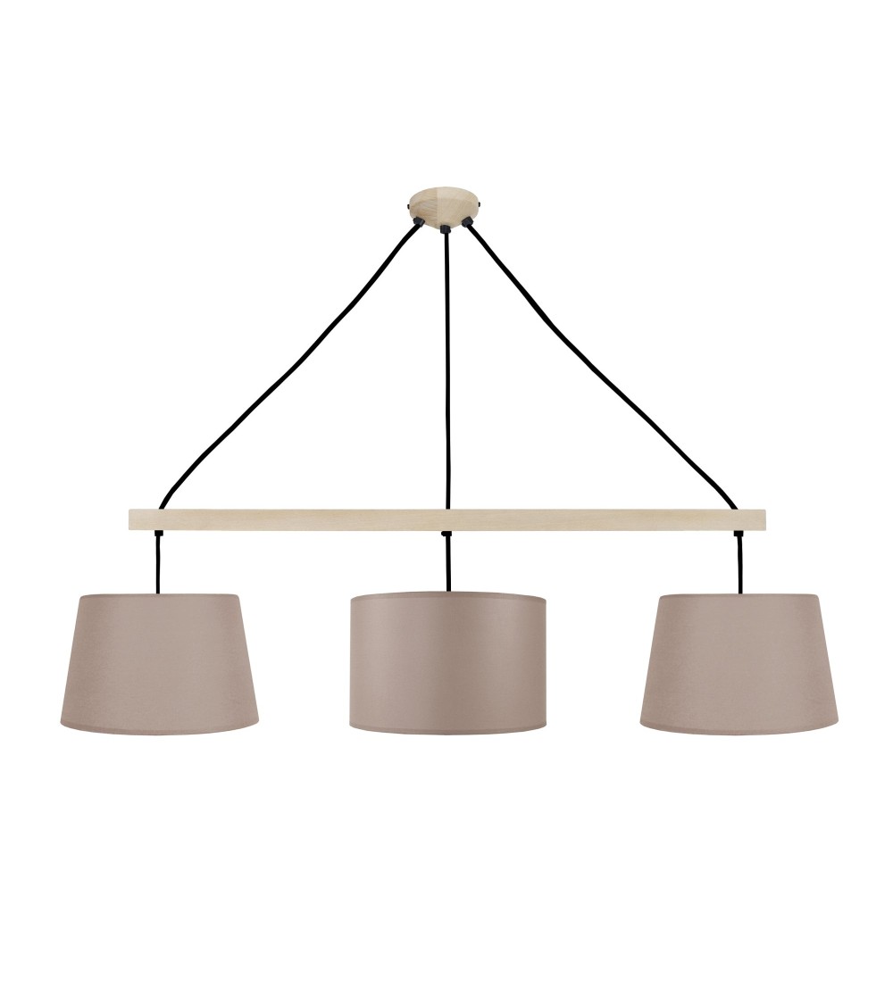La petite poûtre en bois d'hêtre français de forêt eco-durable, equipé de trois abat-jours, en tissu coton, poser au dessus de votre table rectangulaire, donne a votre séjour, sale a manger ou cusine le vrai atmospher naturel et de relaxant. Le savoir vivre toutes les jours avec la nature dedans votre maison. - Suspensions AMESTERDHAM poutre bois naturel et taupe - Abat-jour tissu couleur taupe forme cylindrique et tambour - Douille E27 x3 lumière - Ampoules non inclus conseillé: LED 7W (halogène, maxi. 40W) type standard A19 - Projection lumineuse ambiant - Connexion réseau électrique: boîtier de connexion isodom - Interrupteur non inclus - Style inspiration nordique - Classe de Protection I - Indice de protection: IP20 - Dimmable , dimmer non inclus - Tension de fonctionnement : 230V - Tension d'alimentation : 230V - Dimension abat-jour: Hauteur 18cm x Longueur 30cm x Largeur 25cm - Dimension global: Hauteur 80cm x Longueur 80cm x Largeur 30cm - Poids net du produit: 2,4KgSuspensions AMESTERDHAM tissu cylindrique et tambour taupeDouille E27x3 lumièreAmpoules non inclusAmpoules conseillé: LED 7W (halogène, maxime 40W) type standard A19Projection lumineuse ambiantConnexion réseau électrique: boîtier de connexion isodomInterrupteur non inclusStyle inspiration nordiqueIndice de protection: IP20Dimension abat-jour: Hauteur 18 cm x Longueur 30 cm x Largeur 25 cm Dimension global: Hauteur 80cm x Longueur 80cm x Largeur 30cm