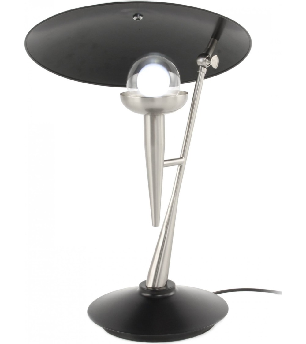 Lampe de table extravagante en métal au design moderneLampe de table au design extravagant Avec cette lampe de table, vous créez un accroche-regard absolu grâce à son apparence extravagante. L'armature en métal avec une base ronde forme un ensemble harmonieux avec l'abat-jour simple, qui était également en métal. L'aspect puriste fait également de la lampe un élément décoratif élégant qui crée une ambiance moderne dans chaque pièce. Le design élégant avec les éléments luxueux apporte non seulement la modernité mais aussi une sensation glamour. Grâce à la lampe librement visible, vous pouvez influencer l'aspect général de la lampe en choisissant une lampe attrayante dans votre propre style personnel. L'abat-jour incliné est ce qui rend la lampe si spéciale. La lampe peut être facilement allumée et éteinte à l'aide de l'interrupteur à bascule intégré au câble. La couleur réelle de la lampe peut différer des images. Lampe de table extravagante en métal au design moderne Look attrayant Lampe de table dans un style extravagant Design moderne Jeu de couleurs luxueux Illuminants clairement visibles Cadre métallique stable En matériau facile d'entretien Peut être allumé et éteint par un interrupteur à bascule Plus en détails : Couleurs commerciales : Argent, noirCouleur principale : ArgentCouleur secondaire : NoirMotif : UniNormes : IP 20Format : Lampe de tableHauteur (cm) : 50Longueur (cm) : 36Largeur (cm) : 36Dimension article : 36 x 36 x 50 cmLongueur du cable max. (cm) : 200Poids du produit (kg) : 2,8Type d'ampoule : G4Nombre d'ampoules : 1Ampoules : Ampoule(s) non fournie(s)Classe énergétique : A++Puissance : 1 x 40WWatts max. par ampoule : 40Matière principale : MétalMatière : FerStyle : NeoclassicThemes : Urban CityCollection : FlyerGarantie : 2
