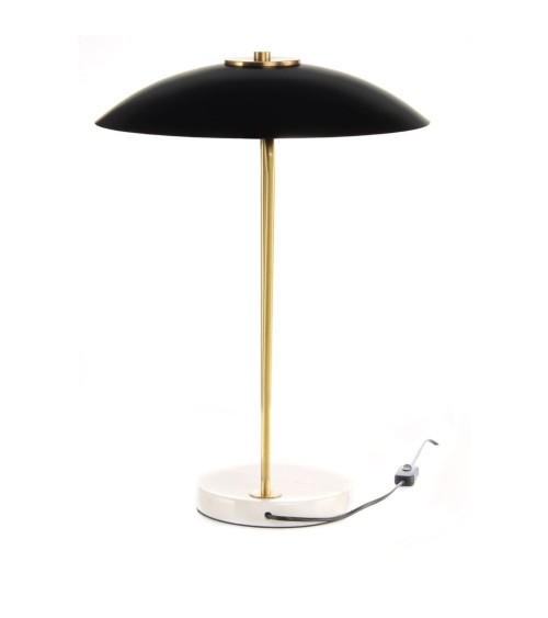 Lampe de table de haute qualité avec base en marbre, design moderneLampe de table au design extravagant Avec cette lampe de table, vous créez un accroche-regard absolu grâce à son apparence extravagante. L'armature en métal avec une base ronde en marbre forme un ensemble harmonieux avec l'abat-jour simple et minimaliste, qui était également en métal. L'aspect puriste fait également de la lampe un élément décoratif élégant qui crée une ambiance moderne dans chaque pièce. Le design élégant avec les éléments luxueux apporte non seulement la modernité mais aussi une sensation glamour. Grâce à la douille mobile, l'illuminant de la lampe peut être aligné de manière ciblée pour créer un éclairage de mise au point atmosphérique. Influencez l'optique globale de la lampe en choisissant une lampe attrayante, car la lampe librement visible contribue à l'image globale. La lampe peut être facilement allumée et éteinte à l'aide de l'interrupteur à bascule intégré au câble. La couleur réelle de la lampe peut différer des images. Lampe de table de haute qualité avec base en marbre, design moderne Armature en métal Lampe de table avec style Base en marbre Design élégant Abat-jour puriste en métal Cadre réglable de manière flexible Active l'éclairage de mise au point Peut être allumé et éteint par un interrupteur à bascule Plus en détails : Couleurs commerciales : Blanc, orCouleur principale : BlancCouleur secondaire : OrMotif : UniNormes : IP 20Format : Lampe de tableHauteur (cm) : 58Longueur (cm) : 40Largeur (cm) : 40Dimension article : 40 x 40 x 58 cmLongueur du cable max. (cm) : 200Poids du produit (kg) : 6,62Type d'ampoule : E27Nombre d'ampoules : 1Ampoules : Ampoule(s) non fournie(s)Classe énergétique : A++Puissance : 1 x 40WWatts max. par ampoule : 40Matière principale : MarbreMatière : Fer, marbreStyle : NeoclassicThemes : Urban CityCollection : KayaniGarantie : 2