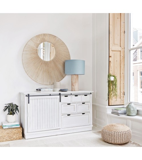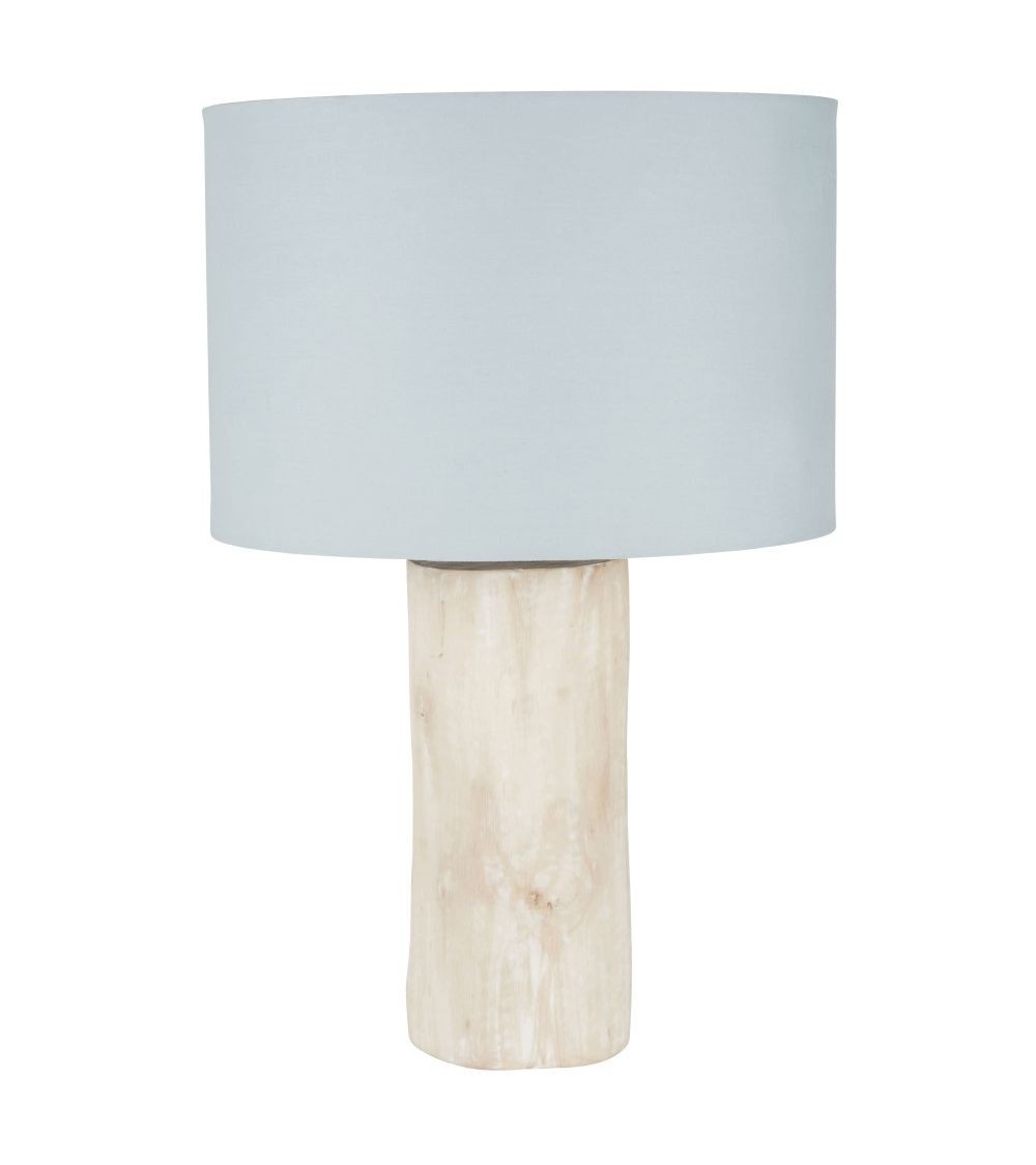 Lampe en bois d'eucalyptus et abat-jour en coton vert d'eau