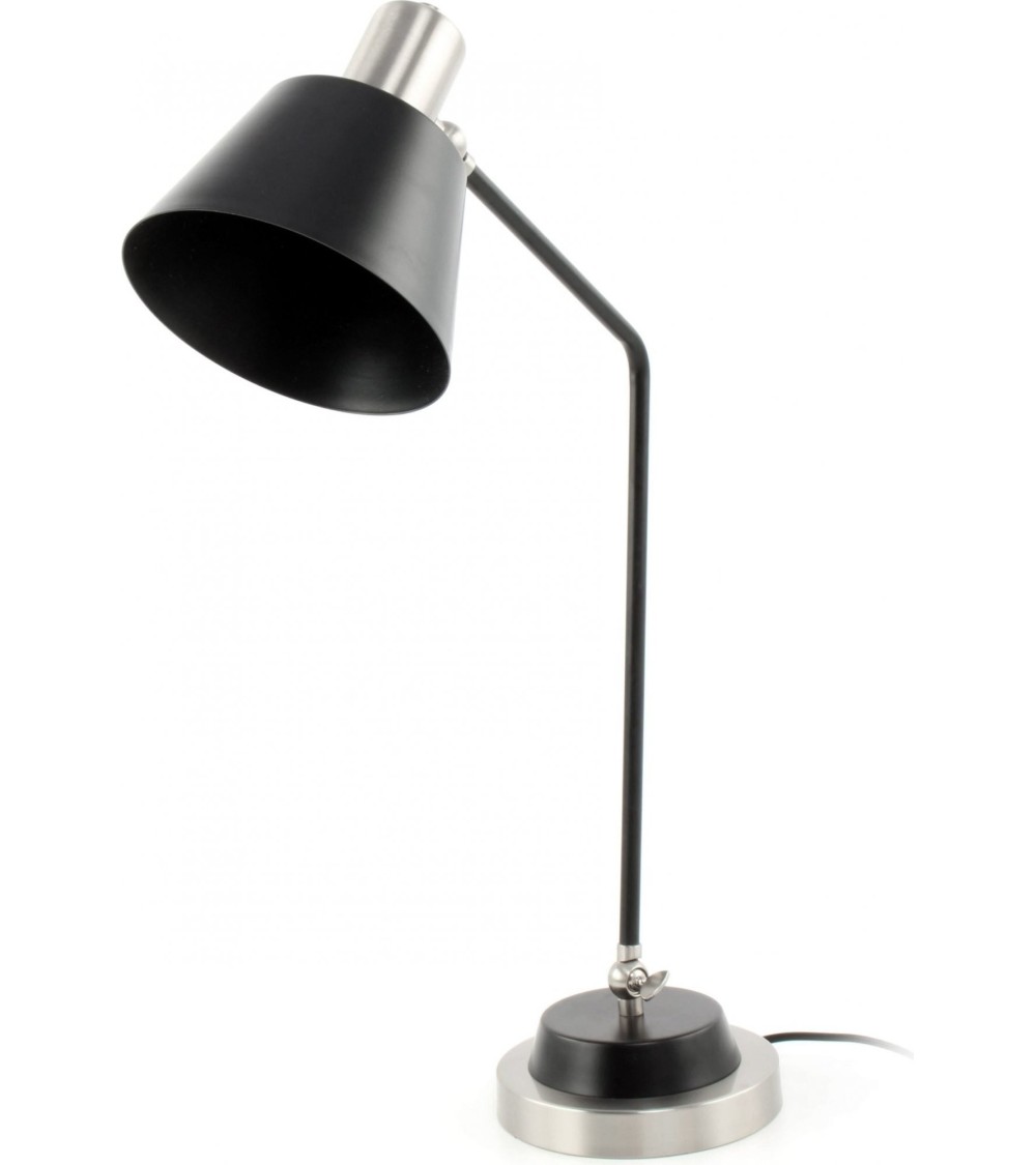 Lampe de table en métal avec des accents contrastants, cadre de lampe incliné, design moderneLampe de table attrayante Cette lampe de table est un accroche-regard élégant. La structure métallique au design minimaliste forme un ensemble harmonieux avec la base ronde et l'abat-jour rond et simple. Lorsque la lumière est allumée, vous obtenez un éclairage chaleureux dans la pièce. Ce modèle peut également être utilisé de manière optimale comme lampe de bureau. Grâce au matériau facilement essuyable, la lampe est très facile à entretenir. La lampe peut être facilement allumée et éteinte à l'aide de l'interrupteur à bascule intégré au câble. La couleur réelle de la lampe peut différer des images. Lampe de table en métal avec des accents contrastants, cadre de lampe incliné, design moderne Lampe de bureau idéale Lampe de table au design élégant Abat-jour orienté vers le bas En métal facile d'entretien Look noble Forme ronde Idéal pour les espaces de vie classiques et modernes Peut être allumé et éteint par un interrupteur à bascule Plus en détails : Couleurs commerciales : Argent, noirCouleur principale : ArgentCouleur secondaire : NoirMotif : UniNormes : IP 20Format : Lampe de tableHauteur (cm) : 60Longueur (cm) : 32Largeur (cm) : 16Dimension article : 32 x 16 x 60 cmLongueur du cable max. (cm) : 200Poids du produit (kg) : 2,45Type d'ampoule : E27Nombre d'ampoules : 1Ampoules : Ampoule(s) non fournie(s)Classe énergétique : A++Puissance : 1 x 40WWatts max. par ampoule : 40Matière principale : MétalMatière : FerStyle : NeoclassicThemes : Urban CityCollection : TriumphGarantie : 2