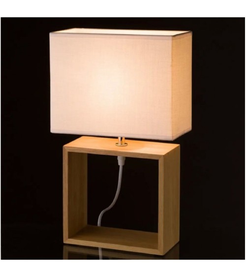 Lampe à Poser Rectangulaire Bois Abat-jour Blanc - Hauteur 41cm