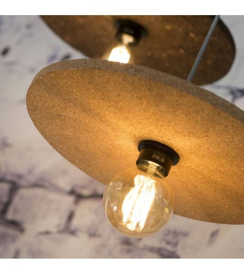 Suspension de la collection Algarve éditée par Good & Mojo composée d'une rosace de plafond, d'un cordon d'alimentation gainé de textile noir et blanc et d'un disque réflecteur en liège naturel teinté brun.Les luminaires Good & Mojo sont issus du commerce équitable. Pour tout achat d'un luminaire, la marque propose l'opération : une lampe achetée, un arbre planté et 5% du prix du luminaire est reversé à l'association Waka Waka qui fournit des lampes solaires aux populations n'ayant pas accès à l'électricité.La collection Algarve se décline en deux finitions : liège naturel et liège teinté.Ampoule : 1x40W E27 (non fournie).
