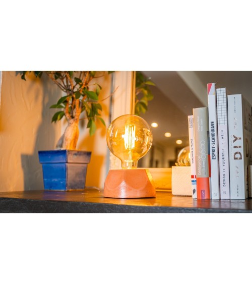 Cette lampe béton, modèle Hexagone, est fabriquée dans latelier de Junny à Montargis (45). Afin d'obtenir un béton coloré, la créatrice mélange son béton dans la masse à des pigments naturels. Le béton est protégé par une cire à la finition satinée qui apporte protection et brillance au béton coloré. Les éléments qui composent la lampe sont tous issus dentreprises Françaises. Cette lampe en béton, modèle Hexagone, est 100% made in France et fabriquée de manière artisanale. La lampe béton de forme hexagone vendue avec son ampoule globe donne un style design à votre décoration intérieure. On l'adore pour son socle en béton coloré aux lignes géométriques, hyper design et épurées. Afin de rompre avec ce côté géométrique, la lampe béton a été agrémentée d'une grosse ampoule globe à la technologie LED et à filaments au style industriel. Ce luminaire d'appoint devient un objet décoratif à part entière de votre décoration intérieure.