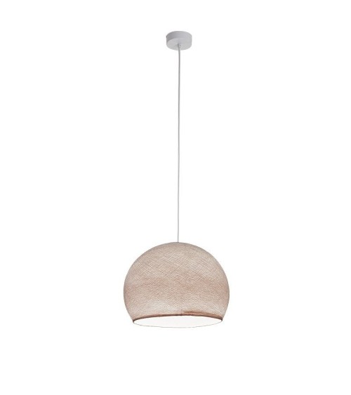 Coupole M suspension simple, pavillon plastique cylindrique, fils tissés (80 cm), fils réglables. Etoiles de fixation universelles fournies (compatible douille E27). 1 ballon et 1 spray pour la remise en forme de la coupole. Ampoules non fournies.