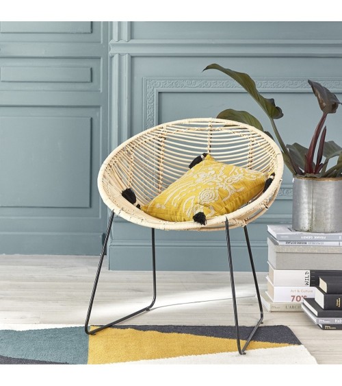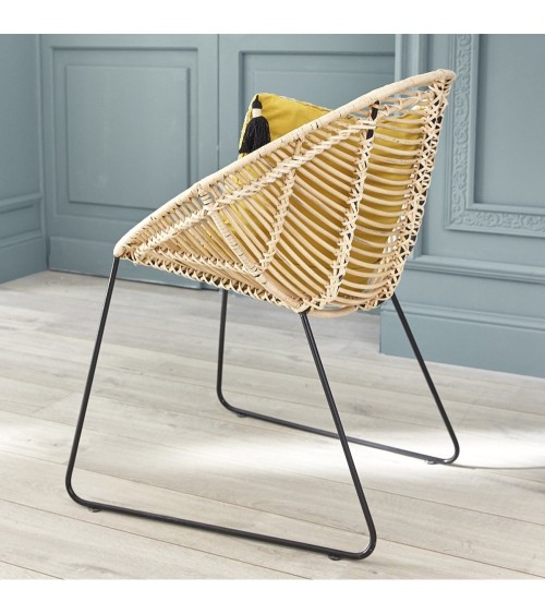 Pour un intérieur douillet, authentique et à la fois actuel, n'hésitez plus et craquez pour le rotin. Cette chaise en rotin et métal de forme originale trouvera aisément sa place chez vous. Au salon ou autour d'une table de salle à manger, le rotin est un incontournable cette saison. Caractéristiques : Matière : Rotin et métal - Couleur : Naturel et noir - Largeur 71 cm - Hauteur : 80 cm - Profondeur : 61 cm - Poids total : 7 kg - Garantie : 5 ans - Montage : Livrée montée.