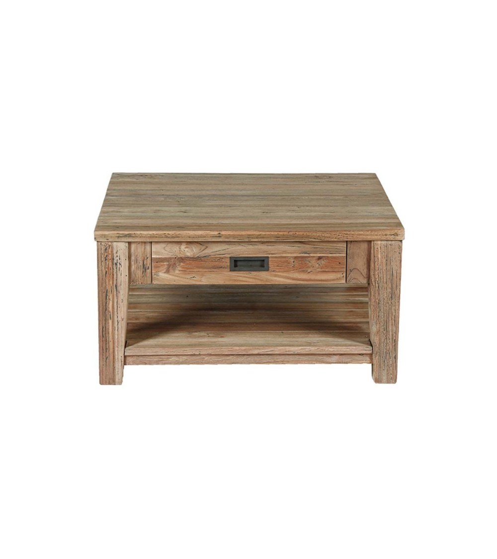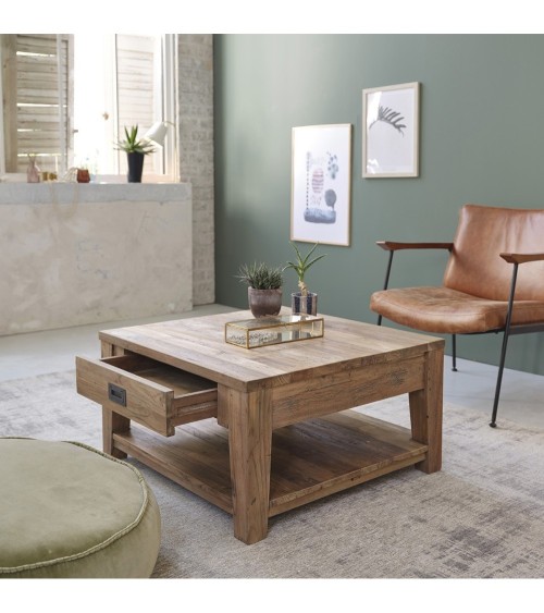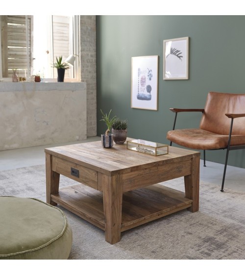 Cette table basse en bois de teck recyclé dispose d'une forme carrée pour plus de praticité. Son double plateau et son tiroir en font un meuble fonctionnel, associé à un style industriel et vintage. Caractéristiques : Matière : Teck recyclé - Couleur : Bois naturel - Hauteur : 42 cm - Longueur : 80 cm - Largeur : 80 cm - Poids : 38 kg - Garantie : 2 ans - Montage : Livrée montée. Les + : 1 tiroir Double plateau - Teck recyclé.