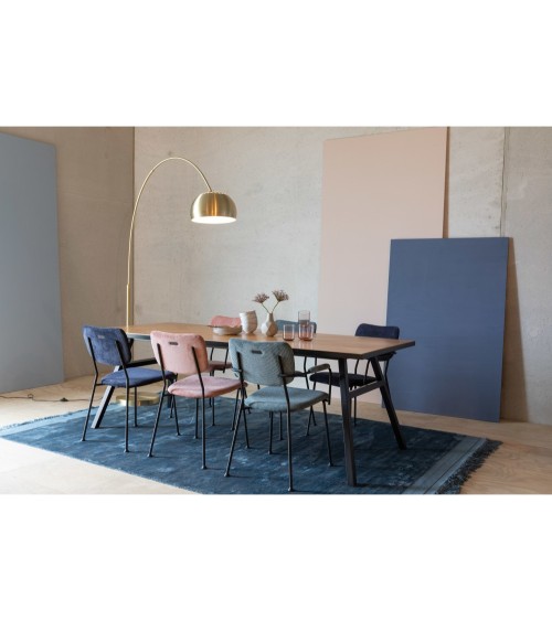 Chaise de repas de belle qualité avec une assise confortable en tissu velours quadrillé bleu foncé. Si avec l'approche du printemps, la plupart des matières s'allègent, le velours, lui, reste d'actualité. Il continue d'affirmer une élégance confirmée tout en créant une ambiance cosy et chaleureuse. Les solides pieds en acier noir lui confèrent une légèreté visuelle très actuelle. La collection Benson de Zuiver comprends les chaises avec ou sans accoudoirs et les tabourets de bar assortis en 2 hauteurs d'assises et déclinées dans plusieurs couleurs tendance.