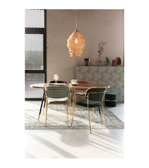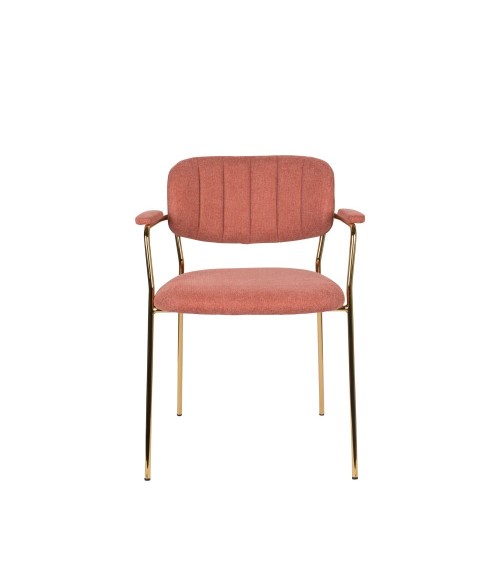 Alliance réussie entre modernité, lignes raffinées et touche colorée, cette superbe création possède toutes les caractéristiques pour créer une déco chic et vitaminée. La chaise avec accoudoirs Jolien attire immédiatement l'attention avec ses pieds dorés luisants lui apportant un côté précieux particulièrement apprécié. Sur sa structure fine et légère en métal repose une assise aux dimensions généreuses ainsi qu'un dossier surpiqué. Revêtu de son tissu doux et résistant 95 pour cent polyester 5 pour cent nylon, elle apporte charme et élégance à la pièce. Cette duo de chaises aux accents glam de la collection Jolien est décliné en 4 couleurs - rose, vert, vert de gris, bleu foncé.