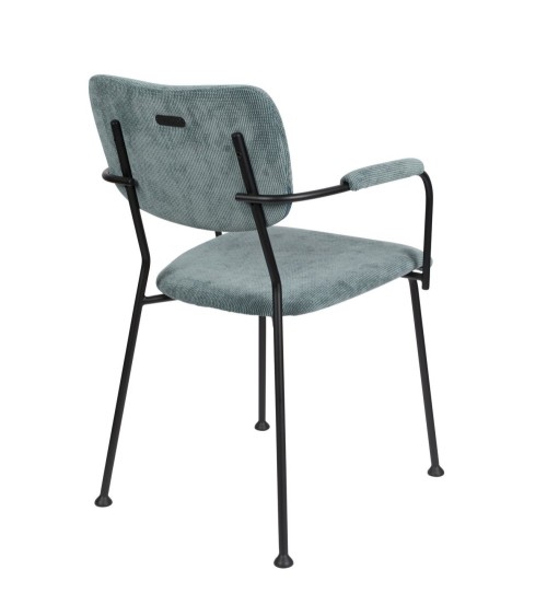 Chaise de repas avec accoudoirs de belle qualité avec une assise confortable en tissu velours quadrillé gris bleuté. Les solides pieds en acier noir lui confèrent une légèreté visuelle très actuelle. La collection Benson de Zuiver comprends les chaises avec ou sans accoudoirs et les tabourets de bar assortis en 2 hauteurs d'assises et déclinées dans plusieurs couleurs tendance.