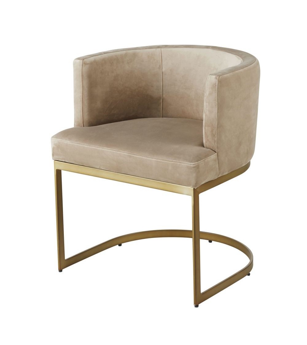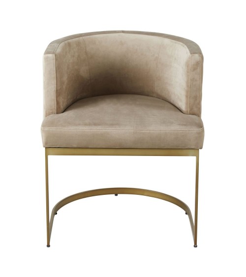 Fauteuil en velours taupe pieds en métal coloris laiton