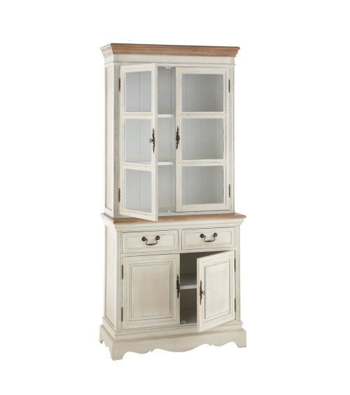 Vous aimez le contraste du bois naturel et de la patine ? Découvrez le vaisselier LÉONTINE.Décliné dans une belle patine couleur crème, ce vaisselier se divise en deux corps - une partie vitrine pour exposer des objets qui ont du vécu et une partie basse avec 2 portes et 2 tiroirs pour ranger toute votre vaisselle ou linge de maison.Un vaisselier à la structure solide en pin massif mUn meuble de style authentique qui complètera à merveille votre ameublement séjour avec le buffet et à la table à dîner de la même gamme.