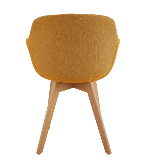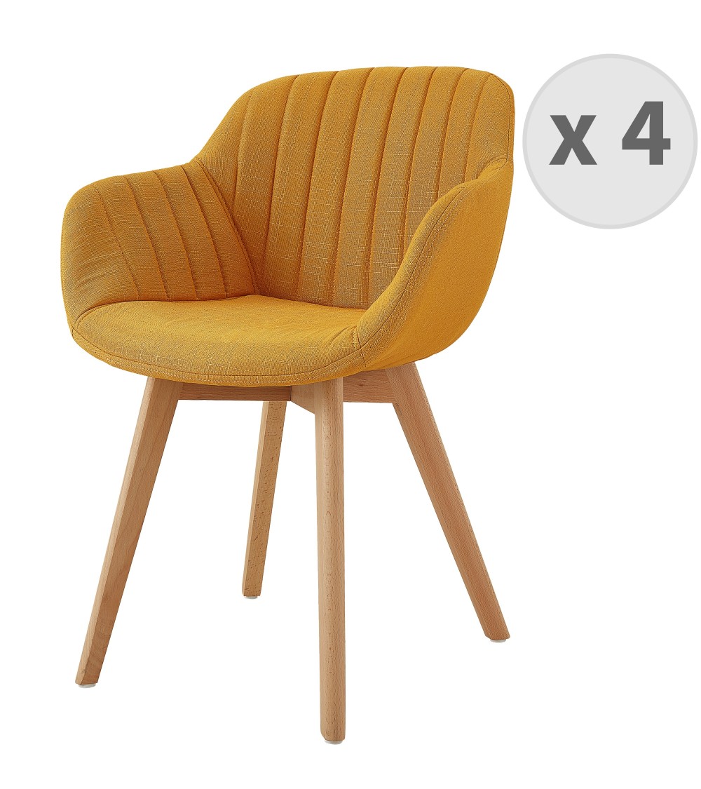 STEFFY - Chaise scandinave tissu curry pied hêtre (x4)
