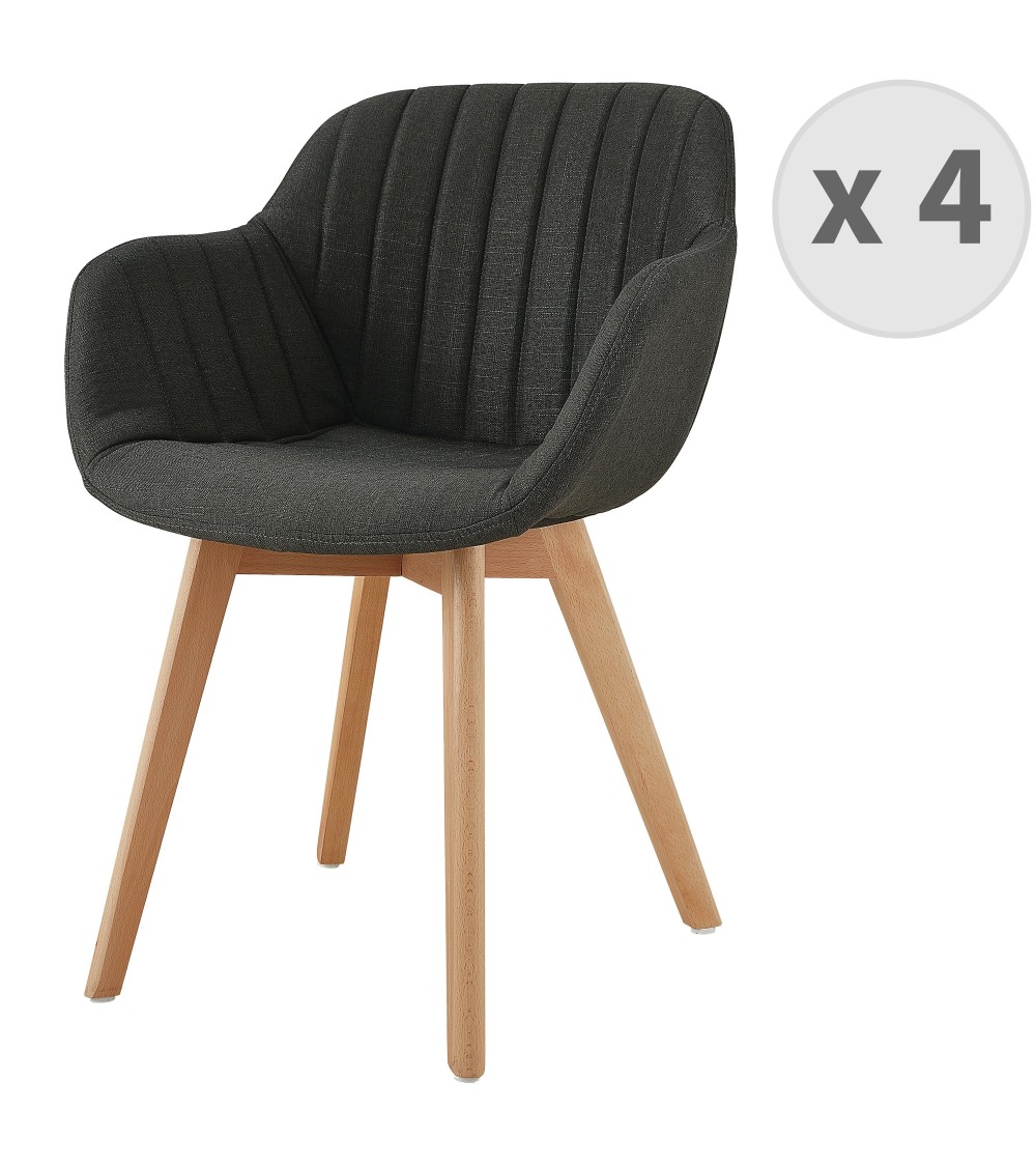 STEFFY - Chaise scandinave tissu gris anthracite pied hêtre (x4)
