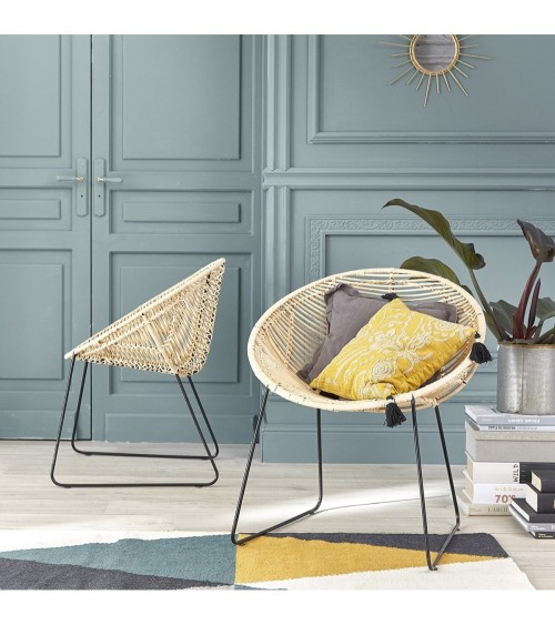 Pour un intérieur douillet, authentique et à la fois actuel, n'hésitez plus et craquez pour le rotin. Ces chaises en rotin et métal de forme originale trouveront aisément sa place chez vous. Au salon ou autour d'une table de salle à manger, le rotin est un incontournable cette saison. Caractéristiques - Matière - Rotin et métal . Couleur - Naturel et noir . Longueur 71 cm . Hauteur - 80 cm . Profondeur - 61 cm . Poids total - 14 kg . Garantie - 5 ans . Montage - Livrées montées.