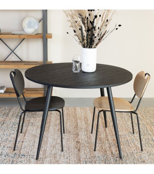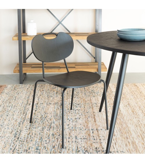 Un bon compromis entre le style indus' et le style scandinave avec le lot de 2 chaises en bois et métal Aspen. Idéales pour peaufiner un coin repas chic et minimaliste, les chaises sont formées d'une assise et d'un dossier en contre.plaqué, ce qui leur donne une allure à la fois compacte et rustique. Les piètements sont fabriqués en métal noir fin pour ajouter une touche de raffinement. Par ailleurs, ils sont équipés de capuchon plastique afin de ne pas abîmer le sol. Les chaises Aspen sont proposées en marron ou noir. Confortables, elles possèdent une hauteur d'assise de 46cm et une profondeur de 56cm. On adore marier les deux couleurs autour de la table à manger !
