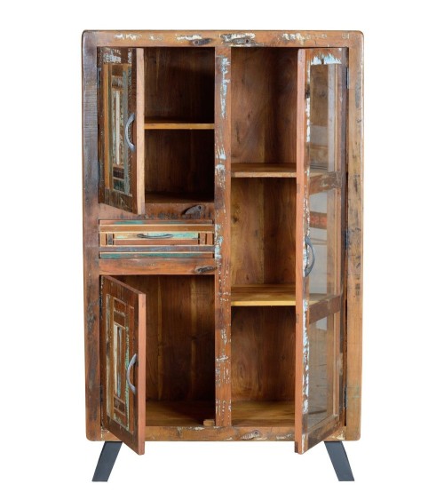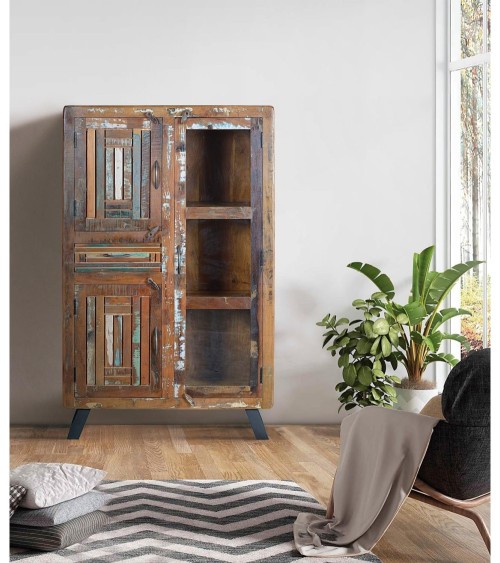 Armoire en bois recyclé de bateaux, portes et vieux meubles. Il a 3 portes et 1 tiroir. Poignées et pieds en métal. Sous réserve de variations de couleur dues à la nature du bois pour sa construction. Dimensions - 140 cm de haut X 90 cm de large X 38 cm de profondeur. Poids 59 kg. Mesures d'emballage - 148 X 47 X 97 cm. Contenu de la livraison - 1 unité.
