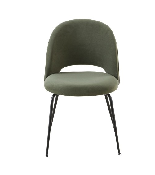 Jumelée à une table à manger en verre ou en métal gris ardoise, la chaise en velours vert kaki et métal noir ISYS ne manquera pas d'attirer les regards. Un look vintage sophistiqué, des pieds obliques en métal noir qui assurent une allure élancée, un dossier et une assise généreusement garnis revêtus d'un velours vert kaki - pas de doute, cette chaise est bel et bien celle que votre intérieur attendait !