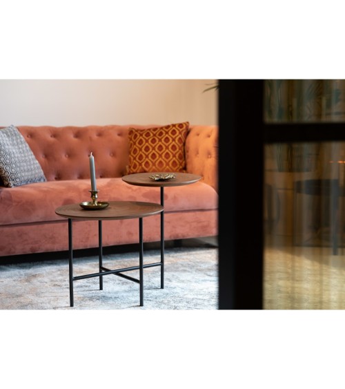 Pour sublimer ingénieusement votre salon, ce meuble original de facture Dutchbone est une excellente option. A mi.chemin entre style moderne et esprit bohème, la table basse Mathison au design épuré se fond naturellement dans le décor. Cette table se compose d'un piétement en métal de couleur noire et de deux plateaux ronds en bois recouvert d'un placage noyer, épais de 18mm et de diamètre différents. Avec ses lignes simples, sa structure en tubes métallique et sa teinte sobre mais attrayante, ce modèle est parfait pour compléter un intérieur à fort caractère. Un seul corps pour 2 surfaces permet une parfaite combinaison du beau et du pratique.