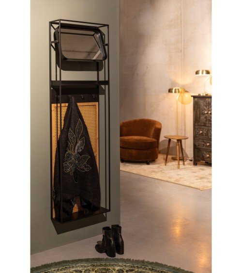 Vestiaire d'entrée avec miroir en métal et cannage rotin