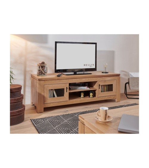 Laissez.vous séduire par le meuble TV bas en chêne clair BOSTON pour apporter une touche de modernité à votre salon.Un meuble télé contemporain et durableTrès graphique et moderne, ce meuble dispose de deux espaces de rangement fermés par des portes vitrées. Les nouvelles poignées métalliques noires encastrées équipent les portes dotées du système de fermeture progressive. Vous disposerez encore de deux niches centrales séparées par une tablette amovible et réglable en hauteur. Très fonctionnel et aux dimensions étudiées, le meuble télé en bois accueille tous les appareils audio et vidéo de votre salon.Conçue et dessinée par le bureau d'étude HELLIN, notre équipe de design a fait évoluer la collection de meubles modernes en bois BOSTON. Epurée et graphique, la collection BOSTON devient plus actuelle en l'équipant de nouvelles poignées contemporaines.Contrastant avec la chaleur du bois massif naturel, la fine poignée métallique affirme sa personnalité et redessine le contour d'une collection de meubles contemporaine et durable. Pensés dans les moindres détails et façonnés selon les techniques d'ébénisterie classique, les meubles de cette collection sont réalisés en chêne. Disponibles en deux finitions - chêne clair et chêne blanchi, ces meubles sont protégés par un vernis de finition permettant une utilisation durable dans le temps, ne nécessitant pas d'entretien. Description technique - Dimensions du meuble télé en bois - L 140 x P 45 x H 45 cm Poids - 43 kg Matières - chêne massif, plaqué chêne, verre trempé, métal peint en noir Finition - chêne clair 2 niches ( L 50 x P 41 x H 12 cm) équipées d'un pa...