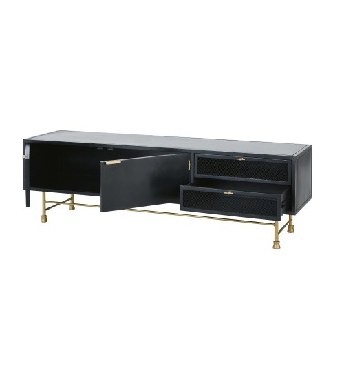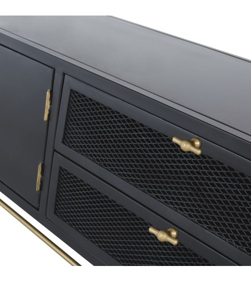 Et si la tendance industrielle rimait avec charme intemporel ? Laissez-vous séduire par le meuble TV 2 portes 2 tiroirs en métal gris anthracite ROCKEFELLER et son petit look chic ! Ce meuble TV a choisi un habit de métal gris anthracite aux touches dorées pour vous conquérir. Il a mis les petits plats dans les grands en vous proposant de nombreux rangements. Profitez de ses 2 tiroirs et de son vaste compartiment protégé par 2 portes pour ranger vos consoles, votre box, ou encore vos coffrets DVD. Ce meuble TV a tout pour vous satisfaire !