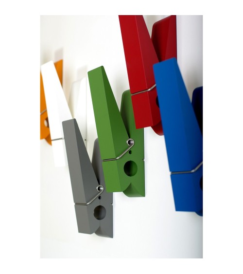 Objet détourné super fonctionnel, la PINCE ALORS ! est l'objet design par excellence. Graphique et colorée, cette patère assure pleinement sa fonction grâce à sa forme asymétrique adaptée. Déclinée dans 8 couleurs tendances, conçue en polycarbonate pour résister à l'humidité, cette maxi pince décalée est utilisable partout, à l'intérieur comme à l'extérieur. Ressort - acier inoxydable Eléments articulés - Polycarbonate/ABS teinté masse Dimensions en millimètres - 205 x 55 x 78 Poids supporté par le dessus en accroche type patère à vêtements - 3 kilos