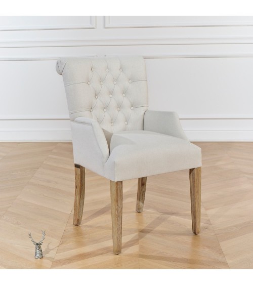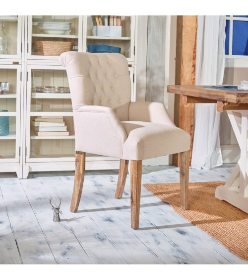 AGATA - Fauteuil de table capitonné en bois et lin naturel Lin