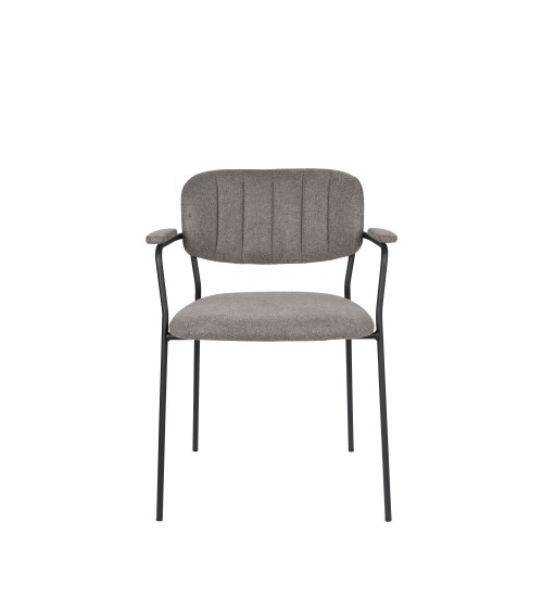 Vous cherchez pour votre salle à manger des chaises confortables, élégantes et indémodables ? Alors découvrez vite le lot de 2 chaises avec accoudoirs en tissu et métal Jolien.Composées de polyester, nylon, contreplaqué et mousse polyuréthane, ces chaises mesurent 79 x 60,5 x 57 cm. Elles se parent de lignes simples qui plairont au plus grand nombre, et sont dotées de pieds fins en métal. On apprécie cet intéressant contraste de matières. De plus, cela permet de ne pas alourdir l'ensemble. Vous noterez également le rappel de tissu au niveau des accoudoirs, pour un rendu confortable et élégant.Les chaises Jolien seront idéales dans un intérieur à la déco contemporaine. Vous pourrez les placer autour de votre table repas, mais également en assise d'appoint au séjour ou encore en guise de siège de bureau. Ces chaises indémodables se marieront aussi bien à une table en métal qu'à une table en bois. Si vous possédez une grande table à manger, pouvant accueillir 6 ou 8 convives, n'hésitez pas à tenter le mix & match, très tendance actuellement, en mariant ces chaises tissu et acier à des chaises tout métal ou des assises en velours côtelé.Avec des chaises comme celles.ci, vous n'aurez plus envie de quitter la table !