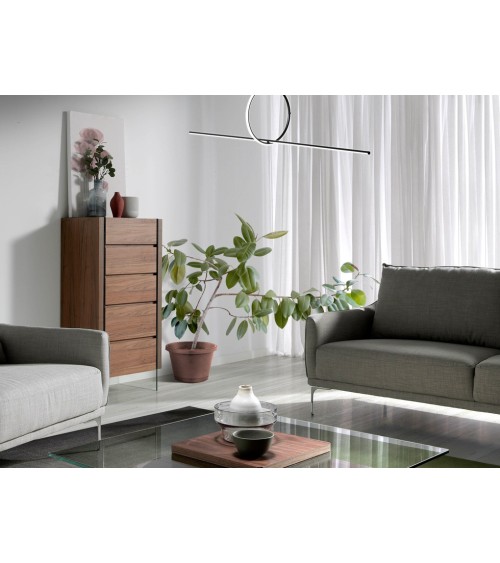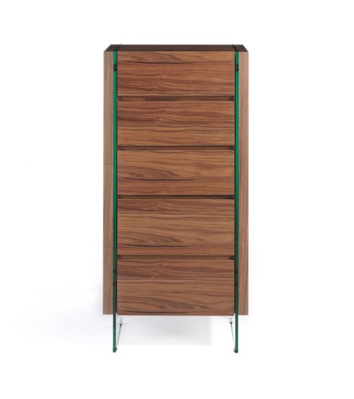 Produit à usages professionnels et particuliers. Chiffonnier en noyer et verre modèle 7041 Angel Cerdá S.L. Chiffonnier de conception moderne en bois plaqué noyer de 0,5 mm d'épaisseur et côtés en verre trempé d'origine de 12 mm et bords polis. Un chiffonnier de style élégant et sophistiqué parfait pour ajouter la touche minimaliste et stylée que vous recherchez à votre chambre, ainsi que pour tout garder en ordre grâce à son espace de rangement à cinq tiroirs, trois simples et deux doubles, avec système de fermeture en douceur. fermeture. Un auxiliaire aux lignes droites, pratique et fonctionnel, ainsi qu'un design pour votre pièce. STYLE- Cet élégant chiffonnier apportera la touche moderne que vous recherchez dans votre chambre. La combinaison du bois de couleur noyer et du verre est parfaite pour créer un environnement chaleureux et élégant. MULTI USAGE- Polyvalent et fonctionnel, son design lui permet de s'intégrer dans tout type de chambre, devenant ainsi un élément décoratif clé de la pièce. DÉCORATION ET CONFORT- Le design de ce chiffonnier aux lignes droites et simples deviendra l'option parfaite si vous recherchez l'élégance et la simplicité, ainsi qu'une plus grande sensation d'espace. FONCTIONNALITÉ- L'effet chiffonnier flottant grâce à ses pieds en verre trempé, ainsi que son grand espace de rangement avec trois tiroirs simples et deux tiroirs doubles avec système de fermeture amortie, apporte cette touche et caractère personnels, tout en le plus de fonctionnalités pour que vous gardiez tout en ordre. GAMME PROFESSIONNELLE - A destination des architectes d'interieur, Bureaux, Commerces et événementiel, Hôtellerie, Restauration.