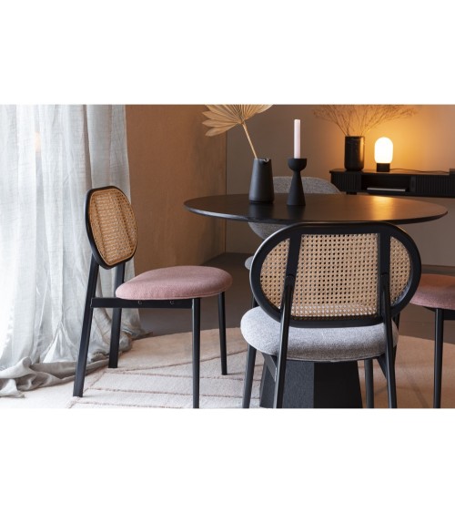 Envie d'un nouveau meuble design pour votre intérieur ? Laissez.vous séduire par la chaise en tissu et cannage Spike. Au.delà de sa fonction première de chaise, c'est surtout un meuble terriblement design. Plusieurs matériaux ont été utilisés pour avoir un rendu aussi original. Sa structure est entièrement faite de métal noir. Et on adore comment son dossier à été designé. Son siège est constitué d'une base en contreplaqué rembourrée de mousse et recouverte d'un beau tissu de qualité pour une assise à la fois ferme et confortable. Mais l'on va plus s'intéresser à son dossier qui fait toute son originalité. Si vous aimez le cannage, la chaise Spike de Zuiver est faite pour vous ! Ce sont des tiges de rotin qui sont tissées à la main. Cette matière naturelle apporte un contraste étonnant avec le tissu et le métal noir. Dans la salle à manger ou simplement le coin repas, elle sera parfaite.