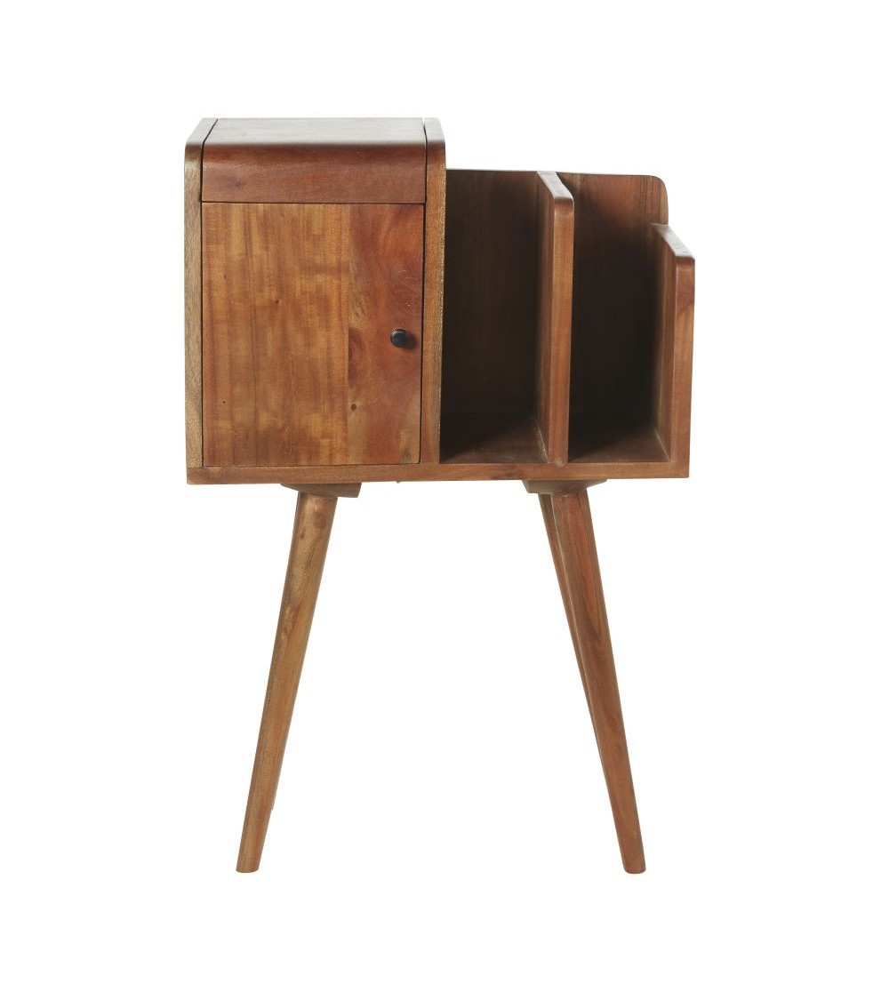 Le petit meuble de rangement en acacia WILLIAM a plus d'un tour dans son sac ! Son look vintage et ses lignes sobres vous permettront de l'intégrer dans tous types d'intérieur, pourvu que le bois y trouve sa place. D'un côté, vous pourrez y ranger vos dossiers, livres et autres documents. De l'autre, vous pourrez dissimuler des objets dans le petit placard et placer vos fournitures dans le compartiment du dessus. Un petit meuble idéal pour les adeptes du rangement.