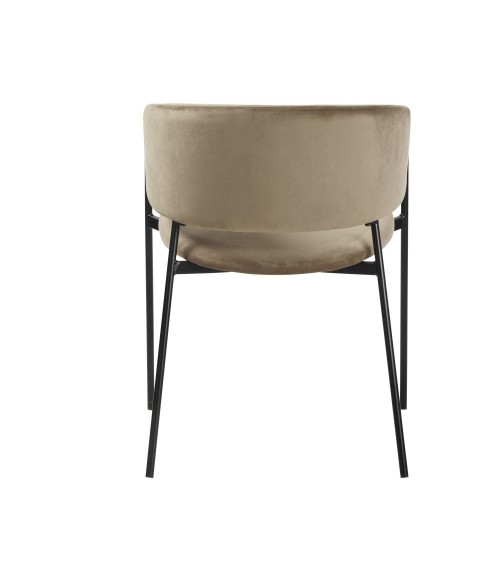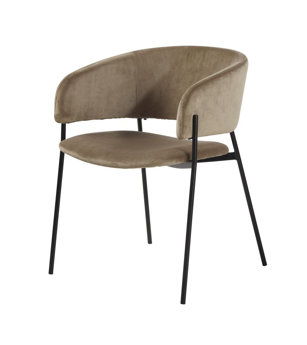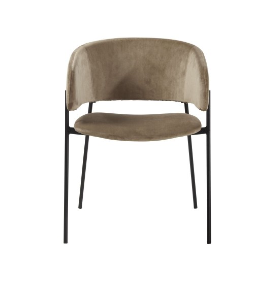 Comment allier confort et style autour de la table ? Cest très simple, il vous suffit dy amener la chaise avec accoudoirs en velours beige capuccino HUG ! Ses lignes simples mais si contemporaines, ses pieds fins en métal noir chic, son velours tout doux, sa couleur actuelle ce fauteuil a vraiment tout pour plaire. Notre conseil déco - jouez sur les camaïeux et les contrastes en mélangeant les différents coloris de la gamme HUG pour un effet tendance et original !