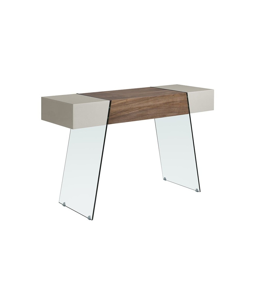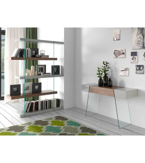 Produit à usages professionnels et particuliers. Console en noyer et verre modèle 3029 Angel Cerdá S.L.Console design moderne avec partie centrale en bois plaqué noyer naturel de 0,5 mm d'épaisseur et côtés en DM laqué gris perle brillant RAL7035. Cette salle originale aux lignes droites et au style sophistiqué, a des pieds en verre trempé de 12 mm et des bords polis qui rendent la sensation d'espace dans l'espace beaucoup plus grande.STYLE: Cette console originale apportera la touche moderne et différente que vous recherchez pour l'entrée de votre maison. Une pièce exclusive idéale à combiner avec les dernières tendances de la décoration.MULTI USAGE: Polyvalente et fonctionnelle, sa conception lui permet de s'intégrer dans n'importe quel hall, couloir ou pièce.DÉCORATION ET CONFORT: Le bois de noyer combiné avec la laque gris perle, apporte chaleur et élégance à l'environnement, ainsi que l'apparence d'un environnement cosy et moderne.FONCTIONNALITÉ: Grâce à sa conception de lignes simples et droites, cette console est parfaite pour créer des environnements spacieux et chaleureux, ainsi que pour avoir un espace ouvert pour laisser vos affaires à portée de main.GAMME PROFESSIONNELLE : A destination des architectes d'interieur, Bureaux, Commerces et événementiel, Hôtellerie, Restauration.