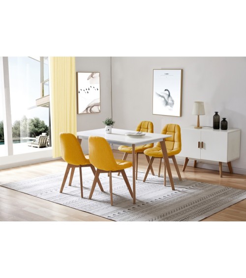 Un style scandinave superbe Le bois massif pour les pieds et le tissu polyester jaune curry pour l'assise cette chaise répond parfaitement aux codes du scandinave pour la beauté de nos intérieurs Stella une chaise confortable bien faite l'assise a une forme agréable et rembourrée de mousse elle a un accueil souple et confortable Déclinée en plusieurs coloris et finitions vous pourrez l'associer facilement à tout type d'intérieur Garantie légale de conformité de 2 ans elle est livrée en 3-5 jours chez vous Le tabouret Owen lui est associé pour une belle homogénéité chez soi Existe en lot de 2