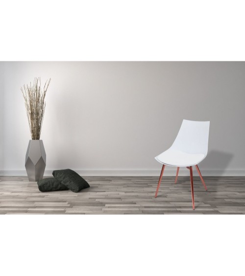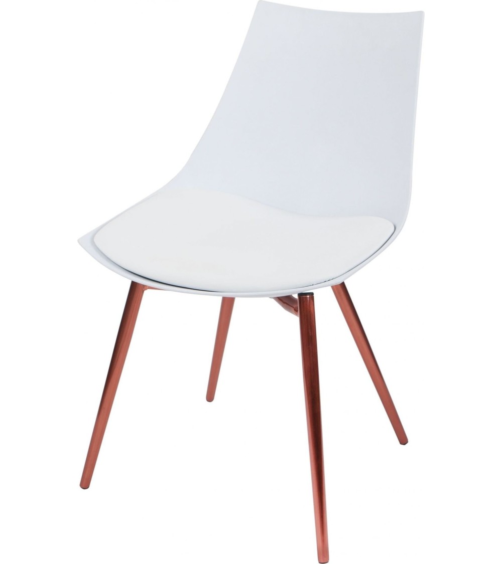 Chaise design imitation cuir blanc pieds cuivré (lot de 4)