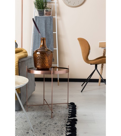 Table basse design ronde Ø43 cm Cupid by Drawer !Très tendance, cette table basse déclinée en plusieurs couleurs très tendances (cuivre, argent/chrome, noir ou or) et différents formats est très légère et se déplace selon vos envies dans la pièce de votre choix. Le plateau de cette table basse design est en verre trempé teinté. Libre, il se retire afin de faciliter son nettoyage. Les pieds sont réalisés en métal, repliables pour plus de légèreté.  Cette table basse design est à la fois épurée, pratique, jolie et accueille de quoi prendre le café entre amis ou vos magazines, livres et autres télécommandes qui remplissent toujours le salon ! Existe aussi en version table basse lounge Cupid Large cuivre Ø62,5 ou Cupid XXL cuivre Ø82,5 cm, en panachant différents coloris et tailles, on obtient un ensemble élégant, fonctionnel et très actuel. Caractéristiques : Coloris : existe en noir, argent/chrome, cuivre ou orPlateau : verre trempé ou miroir teinté selon versionPieds : armature de fer pliableMontage : à assembler suivant instructions jointesDimensions : Ø43,00 * 45,00 cm