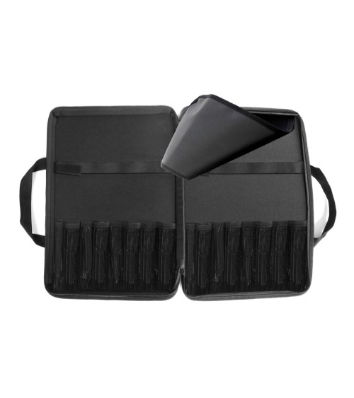 Cette trousse en nylon noir est conçue pour transporter et protéger jusqu'à 8 couteaux de cuisine. Les couteaux Sabatier Trompette ont un niveau de qualité professionnel. Ce sont des outils performants destinés à durer dans le temps.Les accessoires de rangement Sabatier Trompette conservent vos couteaux de cuisine à portée de main.La marque Sabatier Trompette est née au début du 18ème siècle dans le bassin de Thiers, capitale de la coutellerie en France. Les gammes de couteaux de la marque Sabatier Trompette répondent aux usages spécifiques de la préparation culinaire. Forme de la lame, ergonomie du manche, faible poids et parfait équilibre sont étudiés afin d?obtenir des outils parfaits pour les Chefs amateurs ou confirmés.